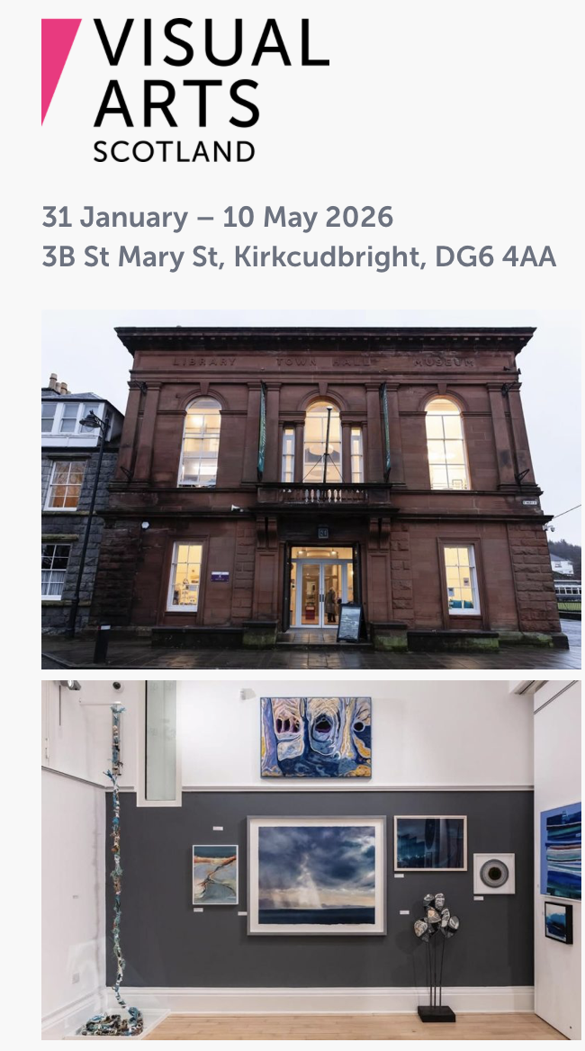 While attending an art exhibition event in the Scottish Borders last autumn, I got chatting to some fellow attendees who suggested that I join Visual Arts Scotland (VAS) after showing them images of some of my own work. Researching more about VAS, I soon applied to become a member which provided me with an online presence and notifications for their upcoming open calls.